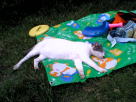 ■ 2004年 7月16日(金) 盛夏、皆で泳ぐ 「今日、セリちゃんと遊ぶ」 帰ってきて、早々にそう言うと、あち〜ぃ・・とダラダラする長女。 ウチにくるか、セリちゃんとこに行くか、公園いくか、のどれかだろう。 ・・と思って、私は お昼の準備をしていた。 しばら〜くしてから長女がひとこと。 「おばあちゃんちでプールやる」 なんだって? それは、私も手伝いに行かなきゃいけない。 こんなのろのろしてる場合じゃない! 「え? お友達と? おばあちゃん、大丈夫だ、って言ってた?」 家に帰ってくる前に、義母のところへ寄り、了解をとってきたらしい。用意周到だ。 長女も入れて小2生が3人。行かせっぱなし、義母に任せきり・・はダメだよなぁ。 やっぱり私も行かなくちゃ! なら、次女も連れてかなきゃ! 急にバタバタし始めた。先に長女を行かせ、次女と私は、少し遅れて行った。 ビニールプールと言っても、空気を入れるタイプのものではなく、円形の、すぐ開くタイプのもの。 それに、3人の女の子がキャーキャー騒ぎながら遊んでいた。 次女もその中に入れてもらって、4人になった。 レジャーシートに、小さなテーブルも出ている。おやつもある。 全員で寝そべってグルグル回ったり、 途中、私が車で出入りしたときも、歓迎の(?)水かけをしたり、 ホースでビュンビュン水を飛ばしたりもして、その他いろいろ、 4時間弱も遊んでいた。 いいな〜! 水遊び! 最後は、お風呂に入り、アイスを食べ、5時過ぎに解散。 準備は間に合わなかったので、子供たちの入浴中に、 義母と一緒に後片付けをした。 プールの下に古毛布が敷いてあったのだけれど、 それを干すのが重かった。 毛布を持ち上げるのではなく、 敷いたままの毛布に、金属竿を通して持ち上げる。 う〜ん、なかなかだ! 私なら、重いよ〜などと言って、毛布を物干し竿のほうへ運んでいるに違いない。 ■ホーム ■このページのトップへ |