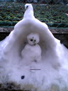 ![]() ▲今日も雪。長女、次女が作った雪だるま”ゆっきぃちゃん”。 |