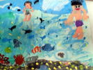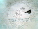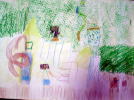■ 2006年 3月24日(金) 生まれる前 今年の2月。次女に、 「おなかの中にいた時の絵を描いて」 と言ったら、こんな絵だった。 吹き出しの中の言葉は、「いって いって」。 右端の黒いとがったものが痛かったんだって。 中央の赤ちゃんらしき<自分>は、泣いている。 ちょっと見にくいかもしれないが、涙ぽろぽろ。 帝王切開だったから、この図は、あっているのだ。 もっと前に、 喋りはじめた頃に聞いたのは、 「ちきゅうのうえ、いって した〜いって、よこ いって ままのおなかに はいった」 ・・だった。 長女の場合。 やはり、やっと話し始めた頃に聞いたら、 立ったまま、身体を前屈させ、 「ぷくぷく〜〜」 ・・と言った。 羊水の中なのだから、これも正しい。 嘘かホントか、いずれにしてもどれも、面白い表現だった。 ■ホーム ■このページのトップへ |