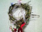 ![]() ▲朝顔のツルで作ったリース(次女、学校にて)。 |