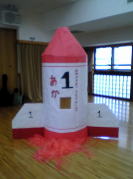 ■ 2006年 11月24日(金) 新型ロケット vo. 「仕事中に突然ひらめきまして」 幼稚園のコンサート。 誰かを呼ぶのではなく、父母が演奏してしまうという催し物。 子供向け (おかあさんといっしょ、童謡など) の歌を、 コーラスやバンドで演奏。 演奏する私たちは、うたのおとうさん(おかあさん) なのだけどネ。 前列(年少さん)、イマイチだったかなぁ。 演奏側は、最前列のノリって気になるでしょ・・? vo. 「僕が (しゃがんで) 中に入って (紐を引っ張って炎を出して) ロケットを発射させます」 発射のとき key さんにBGMで弾いてもらうから、 vo. 「サンダーバードのメロ譜さがしてくれ」 私 「ラジャー! むむ・・サンダーバード、1曲だけのっていうのは無いよ〜ぅ・・」 vo. 「じゃ、スターウォーズだ、スターウォーズ! とにかくロケットを発射させたいっ!」 私 「カシャカシャカシャカシャ・・あった〜! 印刷したので今から持って行きます!」 というやりとりが事前にあってのロケット出発。 vo. 「高田乗組員、ヘルメットかぶります (パーカーの帽子)。 地球にやさしいロケットだから、エネルギーは みんなの声!」 カウントダウンをして、無事発射! ロケットは、幼稚園に着陸。 その後のロケット・・気になるなぁ。 ■ホーム ■このページのトップへ |