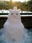 ■ 2006年 1月 22日(日) ゆき、たのしかったね 昨日の雪がまだ残っていたので、今日も雪あそび。 スコップやらカップなどの、おままごとセットを持って、いざ出陣。 (↑夫と子供たちだけ) 最初に夫が帰って来、長女と次女はまだ遊んでいた。 しばらくして、”ピンポ〜ン”。 長女より一足先にと戻ってきた次女。 どっこらしょ・・帰ってきたかー。 2回目の呼び鈴で、ようやくドアを開けた私。 私 「あら・・寒いの?」 コクリと うなづく次女。 私 「寒いか〜〜そっかー、そうだよなぁ〜 ・・・・ん?? あったかいよ。・・あれ?」 じょー。 おしっこだった。 ふぇ〜ん、と泣きながら着替える次女であった。 ■ホーム ■このページのトップへ |