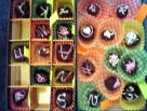![]() ▲次女作トリュフチョコ。スーパーボールを茶色の折り紙で包みました。 |