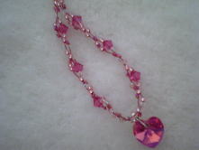 ![]() ◆テグス4号、ハートスワロフスキー、ソロバンプラ4mm、丸小ビーズ・・他 (注: スワロフスキー・・2009年秋 クリスタライズ に名称統一) |