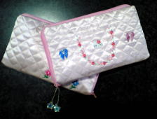 ◆コイルチェーンファスナー 小 ¥105 ピンクサテンのキルティング 他 裏地用の布、アップリケ用ワッペン ◆ニンテンドーDS用のケースです。 ◆市販されているものはDSライト用のものばかりで、それだと小さくて入らない! 夫がファスナーを買ってきてしまった (笑) ので、作るしかありません。 ◆家にあった、余り布で作りました。アップリケも買い置きしてあったものです。 ◆布やデザイン、ファスナーの位置・・は子供たちに任せました。 DSの色はピンクです。 ◆上 (ハローキティ) が次女、下が長女用。長女のものは、赤の刺繍糸で名前をつけました。 ◆キルティングのケバ立ちが気になったので、裏地をつけました。 ソフトが入るよう、ポケットもつけました。 このポケット・・充電器が入るかも! |