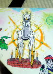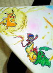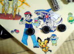 ◆「描ける人〜!」 「見ながらなら描ける〜♪」 ・・と立候補して エレキギターにイラストを描きました。 ◆2009夏のポケットモンスター 「アルセウス 超克の時空へ」 のチラシと、 ポケモンオフィシャルHPのポケモン図鑑 を参考にしました。 ◆2日間で作業。描いてる時間より考えている時間のほうが長い! ◆よく見ると、原画よりも穏やかというのか キレがないというのか ・・表情が違います。難しいんです〜顔。 ◆色を薄くする時は、エタノールを染み込ませた綿棒でマジックの先をこすり、 その綿棒をペンのようにして使いました。 (作業の途中で気付いたので、やけに色の濃いポケモンもいる・・) ◆夫 「これシール?」 ・・確かにシールっぽい。 ◆ガンダムイエロー大活躍! でした。 ◆幼稚園ライブに出没。次は○○幼稚園! |