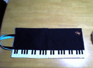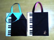 ◆子供たちの学校用音楽バッグです。 リコーダーやピアニカ、音楽の教科書を入れます。 ◆映画 「のだめカンタービレ」 を観に行ってすぐ作りました。 ブルーが長女、ピンクが次女用です。 リバーシブル♪ ◆出来上がり寸法 約35×31cm (持ち手含まず)。 ◆ベースは綿ですが、鍵盤部分は洗えるフェルトで作成。 ◆持ち手は 44×5cm (黒地),44×4.5cm (色地) でカット。 黒地側が太くなっています。 本体は、口の部分を、裏の色が少し見えるように縫いました。 ◆鍵盤 30×30cmのフエルト(白)を細長く 1/4に切り、 2.5cm幅で1つの鍵盤になるように端をつまんで、ミシンがけをしました。 ミシンは表からかけています。 ◆出来上がってから気付いたのですが、 2つのカバンを並べると、長いピアノになります。鍵盤の配列がピッタリ!! ←アップリケでマングースに挑戦・・でもイマイチだった!◆シーチング(濃いピンク)、綿布(家にあった残り布) ◆ウォッシャブルフェルト(白・黒・茶・薄茶) |