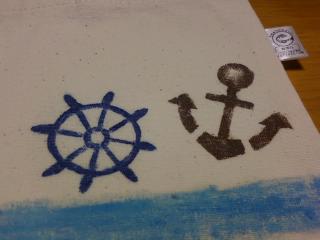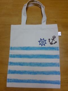 | ◆長女からのリクエストです。 縫製済みのバッグに 布描きクレヨンで絵を描きました。 お弁当、お茶、パンを入れるのにちょうどいい大きさだそうです。 ◆デザインは、長女がネットで画像を探してきて、「こんな感じ」 と何枚も見て決めました。 「マリンテイストで」 ラインの太さは? 色は? 間隔は? ラインはどこまで引く? 模様は? 種類は? 大きさは? 色は? 数は? 紙にクレヨン(普通の)で下書きして、布に当ててイメージしていきました。 ◆いかり は、型紙があったのですが、ハンドル(?)は、なかったので、 バッグチャームについていたものをスケッチして切り抜いて型紙にしました。 これが・・ものすごっく!大変な作業でした。 ◆布描きクレヨン、楽しいっ! このブルーのラインで、かなり消耗しちゃったけどね。 ◆縫製済みバッグ ◆ぺんてる布描きクレヨン 16色 ¥620 |