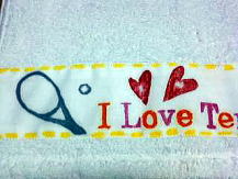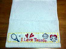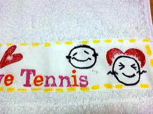 | ◆次女のテニス用です。 ◆白い綿布に布描きクレヨンで絵を描き、市販のハンドタオルに、縫い付けました。 ◆右側のまるいものは・・テニスボールです(次女案)。 ◆写真では縫い目は見えませんが、超!端ミシンでした(笑)。 ◆ハンドタオルは、190円の薄手を使用。 でももう少し価格帯を上げ、 ふわふわのものを使ったほうが良かったなぁ〜と思います。 ◆綿布(白) ◆ぺんてる布描きクレヨン 16色 ¥620 |