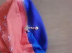 ◆エコバッグ、ミニバッグ、ポーチ・・の3種類つくりましたv ◆写真では色が薄く見えますが、実物は濃く、鮮やかな色合いです。 配色は、CDジャケットと歌詞カードをイメージ。 ◆オレンジ布の厚みがあまりなかったので、二重にして使用。 そうしないと、青布の色が透けてしまう・・。 ◆文字は、ツアーホームページのロゴを印刷して、 それを見ながら、名前ペン(白)を使い、手書きしました。 ◆オレンジ布は、少しツルツルした感じで、 文字が書きやすかったです。 ◆ミシン糸を、上糸オレンジ、下糸が青・・と、 考えながら縫いました。結構面倒〜! ◆<<エコバッグ>> 大きさは、帆布バッグ (POP SAURUS) と同じです。 オレンジと青のリバーシブルにしました。 ◆<<ミニバッグ>> 前面、後ろ面で色違いデザイン (実は布が足りなかったから)。 持ち手も、それに合わせました。 ◆<<ポーチ>> お店で、オレンジ&青のファスナーを見つけ、ポーチを作ることに。 オレンジ、青、紺(?)の3色使っています。 キーホルダー類をつけられるよう、 両側に紐状に布を縫込みました。 形は、オレンジ (みかん) だから、まるくしたかった! 最初、手縫いしたのですが、綺麗にできなかったので ミシンがけに変更・・タイヘンでした。 ◆バッグとポーチを、カラビナでつないでみました♪ ◆ミニバッグとポーチは、セットで 友人にプレゼントしますv ◆家にあった綿布 (オレンジ(ブロード)・紺(シーチング)) ◆綿布 (青(シーチング)) ◆ミシン糸 (オレンジ) (青) ◆なまえペン (白) |