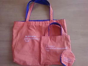 ◆シフクノオト2004 ツアー の帆布バッグが古くなってきたので、 替わりのカバンを作りました。 ◆100cm四方の帆布の、上から12cm分カット(持ち手4本分)。 残った布から、カバンが2つ作れます。底は”わ”になります。 ◆Word で、POPSAURUS の文字を印刷し、 拡大コピーして、文字をくりぬき、 それを台紙にして 布描きクレヨンで文字を書いてアイロンがけ。 花(ピンク)も骨(茶)も同じ方法です。 ◆POP〜の文字のデザイン・色は、 グッズ(ギミックストラップ)に似せました。 ◆MR.CHILDREN〜の部分は、油性マジックを使い、 パンフレットの字体を真似て書きました。 この文字、次女からお褒めの言葉をいただきました♪ ←なんちゃってタグを描いたけど、イマイチ!◆帆布(100×100cm)、厚地用ミシン糸(生成) ◆シーチング(薄ピンク)(持ち手部分の裏布) ◆ぺんてる布描きクレヨン 16色 ¥620 |