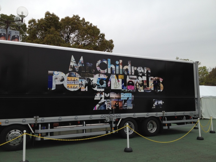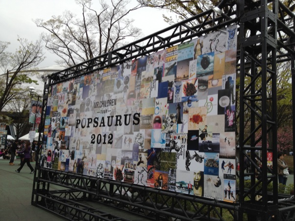 「そろそろ行くよ・・」 リビングで学校の課題に取り組み中の長女に声をかけ、家を出る。 主人の昼食は済んだ。午前中はプリクラ撮りに行く、と言って出かけた次女の昼食も用意した。長女と私は、ドームに着いてから食べるとして・・。あとは隣の実家に声をかけてから出かければOK。 「お願いしま〜す、行ってきま〜す!」 電車を何本か乗り継ぎ、途中、東武デパートでお弁当を買い、約二時間。ようやく西武ドームに到着した。今日は、季節が逆戻りしたかのように寒い。出がけに着るものに悩んだが、カーディガンでなくてよかった。 すごい! 駅からドームに向かう・・というよりももう、敷地の中に駅がある! という状態だ。改札から見て、ドームは左手。改札口の ほぼ正面には、ツアートラックと、大きな看板があった。皆、携帯やスマートフォンで撮影中。私たちもその中に混じり、写真を撮った。 それにしても・・すごい人だ! 横浜アリーナのときも、ツアートラック探して撮影したが、あの時は何だかのんびりしていたのに、今日の”ひしめきあいかた”と言ったら。 写真撮影の人混みをかきわけながら、当日券引換所へ行き、チケットと交換。スタンド1塁側Aブロック・・。1塁側入場口を探し、ゲートに並ぶと、やがて雨がポツポツと降り始め、開場時刻から数分遅れて入場が始まった。列は左手に流れてゆき、チケットを渡し、受け取り、ゲートをくぐる。すぐの右側に 「プレゼント受付」 というテントがあり、奥にいくつかプレゼントが置かれていた。あぁ、何か持って来ても良かったのかな、と思いながら進み、右カーブを上る。だいたいの座席の位置をチェック後、軽食を買い、着席した。 ここ、何人入るのかな?・・3万5千人? ドームといえば 東京ドームしか知らない私にとって、西武ドームでは、予想外だったことがある。 それは半屋外? 完全屋内ではなかったことである。屋根が完全に被っているのではなく、吹き抜けのようになっており、風が通るのだ。これは今の季節には寒い。夜になれば、もっと冷え込むであろう。 ステージセットに目をやると、恐竜の骨を模したセットが吊られていた。あばら骨のよう弓なりの白い骨に、あれは、頭? 頭のようなものが三つ。近くに照明器具も組み込まれている。スクリーンモニターは三箇所。ステージ中央からは、花道が出ていて、先端は、円い、小さなステージになっていた。 長女 「なんか、ヒマだねぇ〜〜」 お弁当を食べ終わるとそう言い、「いつもそうだよ、早く来て開演前に(席に人が埋まるのを見ながら) ボ〜っとしてる」 と答える。 アリーナに、三つ鉄塔があり、その高い塔を人が登っていった。照明スタッフだろうか。客席は少しづつ埋まって行き、開演時刻が迫る。 アナウンスが入り、照明が消え・・さあ、開演だ。 客席が一斉に拍手、立ち上がる。 一曲目は何? 「エソラ」 だった。 (エソラ) 桜井さん、濃いブルーのシャツとジャケット。ここからだと・・何メートルくらいだろう。目鼻は見えない。あらっ、ここから見ると桜井さん、ちょうど(照明の鉄塔の)枠の中に入っちゃうよ。 エソラ・・って何のことか考えてみたけど、皆は何だと思う? 何かの略かな? everyone , everyday , song , love ・・・. 皆、歌が大好き、愛してる。 空へ届け、空へ、空へ! ソラエ、ソラエソラエ・・エソラ?? わからないのもいい。わかったときもまたいい。そう思ってる。 (箒星) (youthful days) 桜井 「ミスターチルドレンです! え〜、今日は・・寒い、ですけど、心は あったかくしてください。 次の曲は、L、O、V、E です」 (LOVE) 最初の三曲がアップテンポだったのに対し、今度はバラードが続いた。 (GIFT) (Everything 〜It's you〜) Everything、私は、この曲でファンになったんだよ! 聴いたことはあったけれど、じっくり聴いたのは2000年。発売日からずっとあとのことだ。 桜井 「どーもありがとう!! え〜、僕らは、もう少しで20周年を迎えます。 (会場拍手) 僕のほうこそありがとう・・。 今日は、いろんな曲を 出し惜しみなく、やりたいと思います。 これー、この照明、日本で一番 照明の数が多いんだって! (それに)負けないように、イチバンの曲を歌いたいと思います。 至らないところはありますが・・ ・・みんなにも、あるでしょ? いたらないところ!(笑) え〜、次の曲はー、 ツアーでやったことは無いです。 何かのマチガイで、どっかの小さいホールでやったことがある、かな?? そして、二度とやらないと決めた曲です。 (でも) 機は熟した・・かな? 華やかな世界で働く女性の・・あぁ、男性でも・・その中間のかたでも(笑)、 ・・の、心の葛藤を歌った曲です」 あぁ、あれだ。 イントロが流れる。 (デルモ) (End of the day) 桜井 「この間・・ミュージックステーションに出たんですけど・・ 春うた特集、って言って・・でも、何でこの曲が春うたなんだろうって思いながら、 何か肩身が狭かったんですけど、 番組側も俺らが出るから気、つかってくれてん